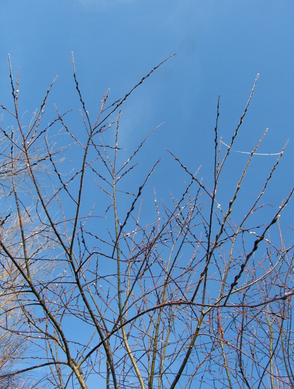The hedge has its binding, there are neatly tied bundles of willow sorted into different colours and lengths and there is the traditional willow ‘flower’ arrangement of coloured stems and even a few pussy willow in the living room.