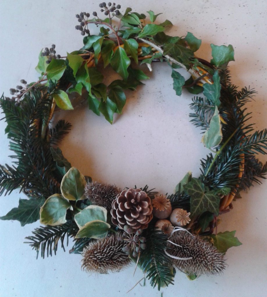 Weave a festive ring using willow, dogwood and other natural materials. Dried flower heads, and lots of different greenery will be provided to decorate your ring but if you want baubles, ribbon or to add something shiny please bring them along – or you can add them later.